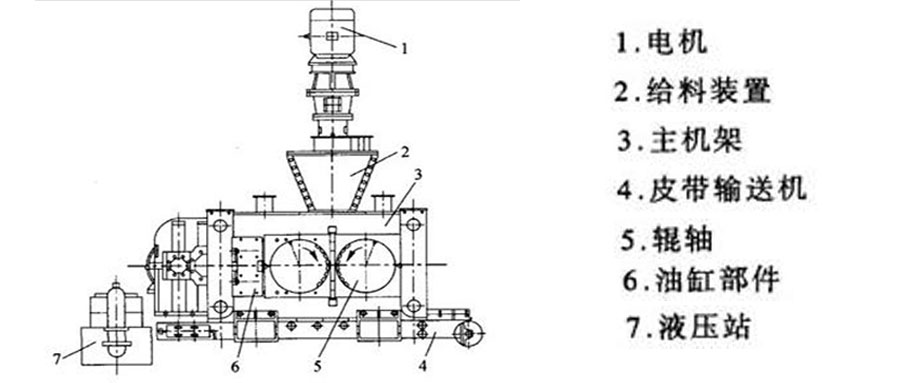 生石灰壓球機主機由電磁調(diào)速電機提供動力,經(jīng)皮帶輪、圓柱齒輪減速機,通過棒銷聯(lián)軸器傳至主動軸。主動軸與被動軸通過開式齒輪保證同步運行。被動軸承座后邊裝有液壓裝置。螺旋送料裝置由電磁調(diào)速電機驅(qū)動,經(jīng)皮帶輪、蝸桿減速器轉(zhuǎn)動,將被 壓物料強制壓入主進料口。由于電磁調(diào)速電機恒矩特性,當螺旋送料機的壓料量與主機所需物料量相等時,可以保持恒定的供料壓力使球團質(zhì)量穩(wěn)定。如供料量過大,則送料裝置的電過載;供料量過小則不成球。因此熟練的操作技是保證壓球正常工作的重要條件。